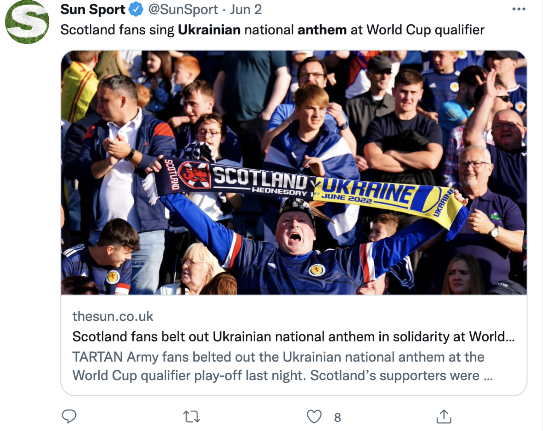 “What if we could teach Scotland fans how to sing the Ukraine national anthem?”.